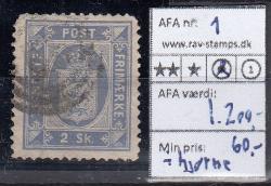 Tjeneste 1. stemplet. AFA 1.200 kr. - hjørner.